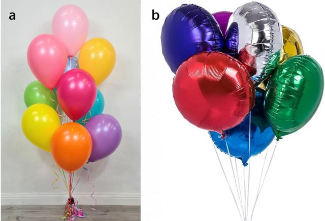 气球表皮的确易燃易爆。较为常见的气球表皮材料主要有两种:一种是图片 3a 乳胶材料,即没有充气时小,在充气过程中会逐渐膨胀;另一种是图片 3b 铝膜气球,这种材料本身不会随气压的变化而变形,气体填充的是内部预留空间。