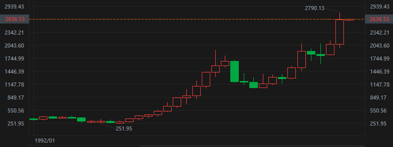 到2024年,现货价格累计上涨超过27%,上一次出现这种全年表现仍在2010年,当初累计上涨近30%。