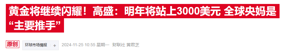 根据媒体调查,最乐观的预测来自于高盛集团,该行预计2025年底价格将达到3000美元。