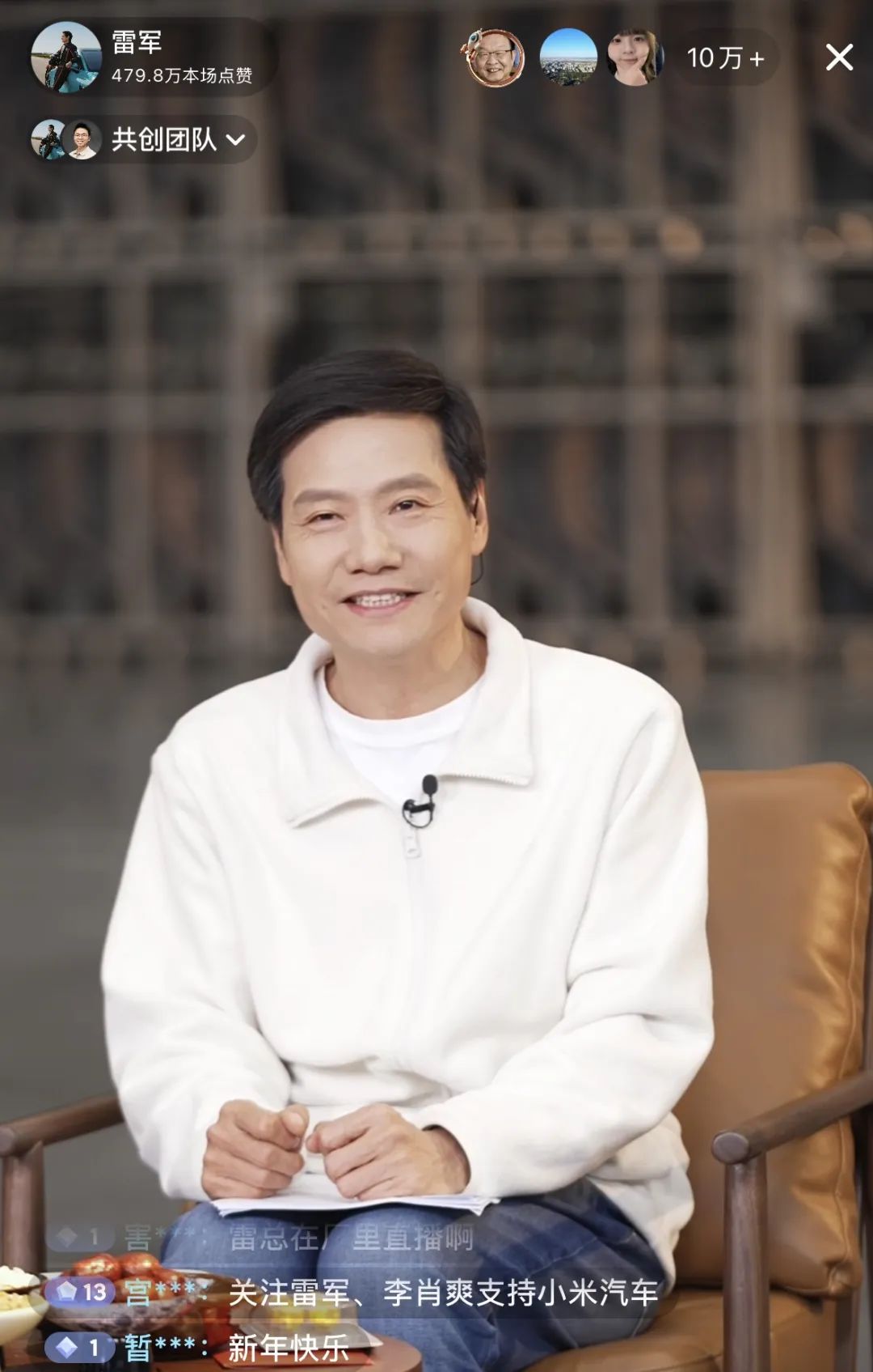 除夕夜晚会上,雷军也如约亮相,在直播间与哔哩哔哩网友互动。除了饰演抽奖“锦鲤鱼”,他还在晚会上宣布,小米汽车将在2025年冲击30万辆。
