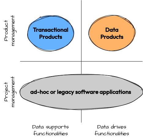假如数据不仅是软件功能的副产物,也是软件功能塑造的重要因素,软体应用程序是由数据驱动的。。交易应用程序优先考虑功能,它们产生的数据起着次要的作用。相比之下,数据产品在其管理数据之上构建了功能。在这里,数据是第一位的,它驱动功能,成为产品的核心部分。