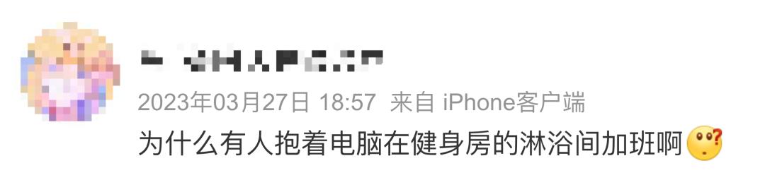 巧合的是,在大厂工作的@团子告诉精炼GymSquare,自己试过一次在健身房加班,就习惯了背着电脑做运动,「总而言之,工作是无法避免的,在间歇组做掉表格还是比较无痛的。」