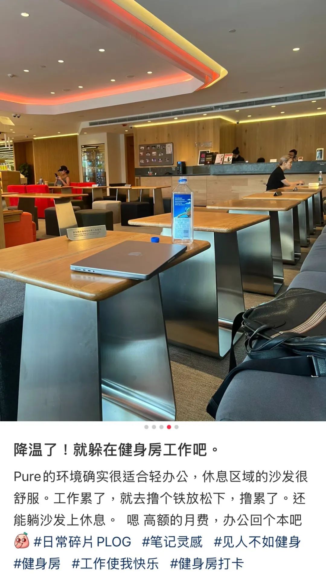 但是在一边加班一边健身的人眼里,有Wi。-Fi、充电柜和插头,相当于健身房的顶级标准。