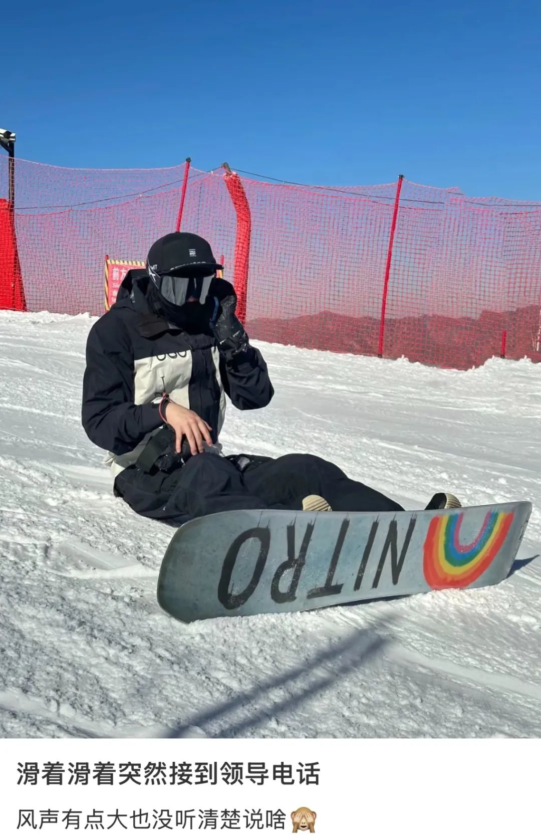 另外,在冬天爆红的雪场,「雪路接电话,缆车回复信息,晚上拿着电脑加班。」同时也是每天上演的打工人。