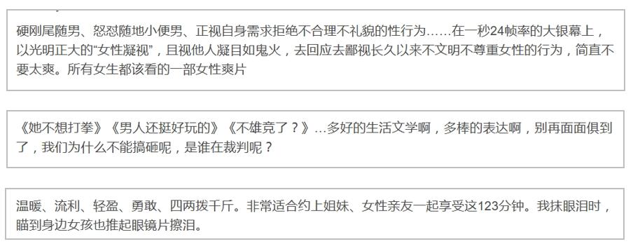 这类电影之所以能吸引女性观众,不仅仅是因为它们提供了娱乐体验,更是因为它们通过喜剧情境给现实困扰带来了温馨的解读和情感缓冲,从而创造了一个轻松的讨论空间,鼓励女性面对困难,突破限制。这种“用电影讲自己的故事”的创作思路证明,女性主题仍有巨大的市场潜力需要探索。