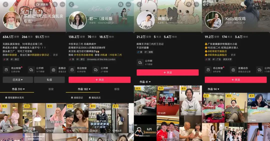 现在在“毛巾少爷”等人的示范下,抖音、视频号等平台上已经出现了不少企二代账号。