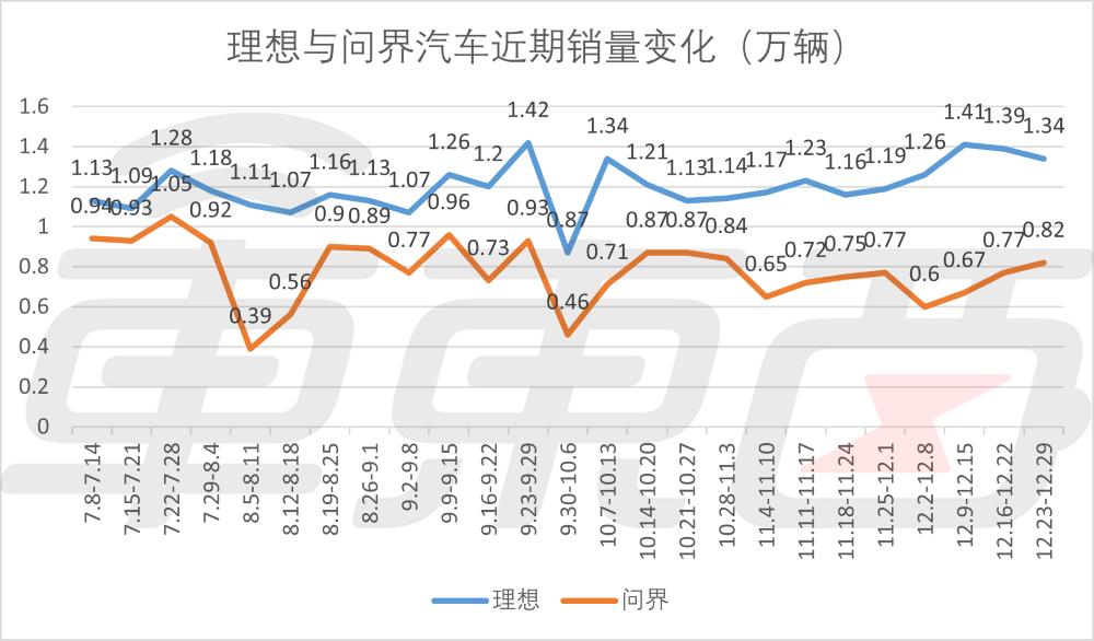 从最近理想和问界周销的表现来看,问界和理想的差距从一步一步来到一步来,直到最后一段时间只有理想的一半,完全拉开了距离。