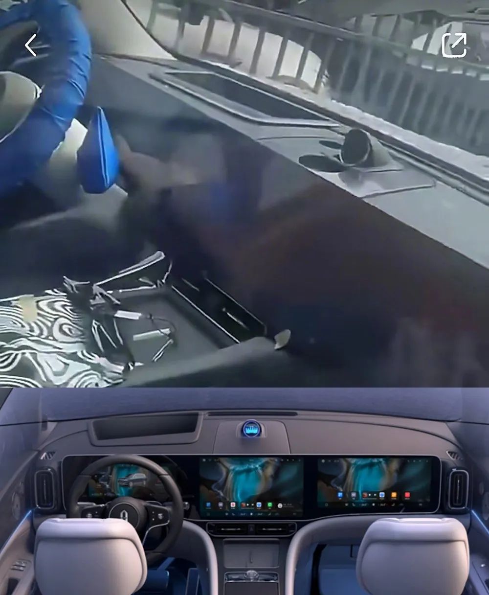 从谍照来看,问界M8的内饰配置与问界M9类似,采用贯穿式大连屏,由全液晶仪表、中控屏、副驾驶娱乐屏组成。