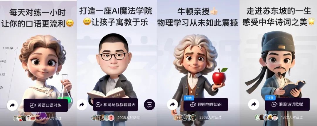 如今,这个虚拟校园汇聚了世界上古今中外几十个“超脑”。从司马华鹏到居里夫人、牛顿、苏东坡的每一位AI老师,不仅有自己的形象和声音,还有自己独特的知识库,可以实时与学生互动,随时随地为自己的领域提供问答和指导。