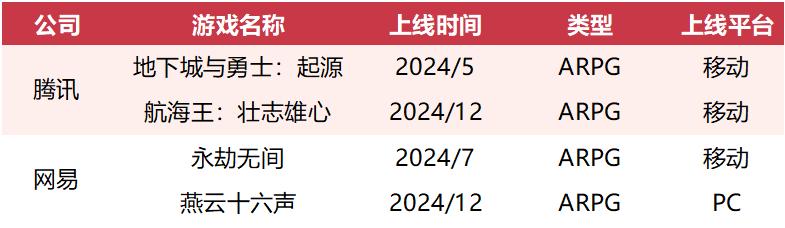在ARPG赛道上有更多的细分玩法类型,腾讯和网易则错开了直面竞争。
