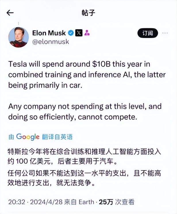 目前,特斯拉的人工智能规划包括芯片和基础设施、自动驾驶技术、人形机器人和储能系统。今年4月,马斯克表示,特斯拉今年将投资约100亿美元进行综合训练和推理人工智能。