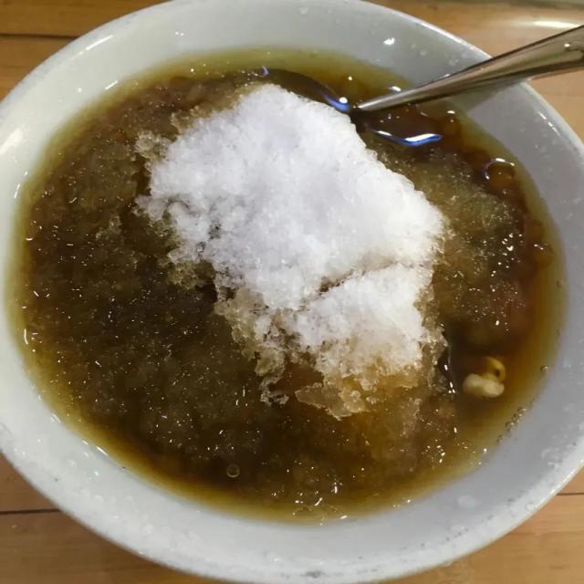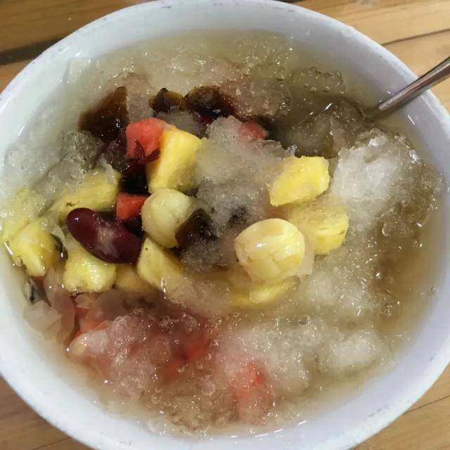 其中白果子和鹌鹑蛋是我最喜欢的,我愿意称之为这个甜汤的核心,每次都要点。如果碗里再加一次。几块碎薄冰,更加清凉可口。