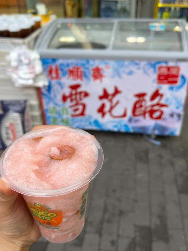 贵州冰浆是用新鲜水果制成的。 檽米 冰 碎糖制成。特别之处在于加了檽米,因此口感比普通冰沙更丝滑,更有层次感。,细致而密集,入口即化。贵州人不愧为执掌糯米的神!真是天才发明!