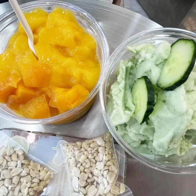 除黄瓜和芒果外,冰浆还有很多味道,大米原味,红提,花生,西瓜,火龙果…吃烙锅、火锅、烤串、肠旺面、羊肉粉、包卷等等都可以搭配一碗,你会在生活中得到一段特别快乐的时光。