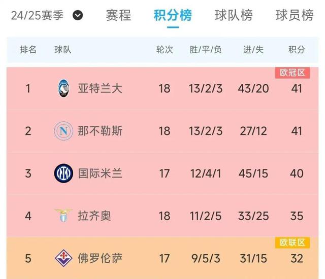 虽然他们在刚刚结束的意超杯半决赛中, 0-2 不敌国米。但在意甲积分榜上,他们确实配得上“真蓝黑”的称号。