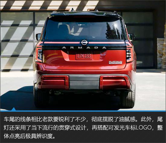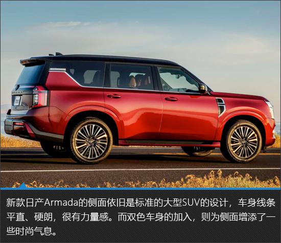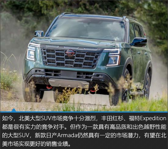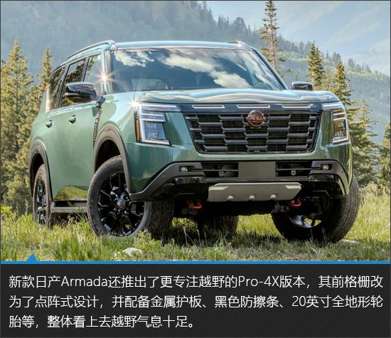 提及日产 Armada,每个人都可能比较陌生,但是如果换成日产途乐,相信你一定是如雷贯耳。日产 Armada 是日产途乐的北美车型,以其极具气场的设计、强大的动力系统和出色的越野性能,在北美市场占有一席之地。不久前,日产又带来了新款式。 Armada,不但外观进行了大幅度的调整,而且配置和动力装置也全面升级,整体产品实力进一步提升。