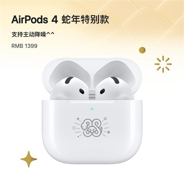 快科技 1 月 4 日消息,为迎接中国蛇年,苹果推出了中国蛇年。 AirPods 4 蛇年特别款(支持主动降噪),目前已上架官网,售价 1399 元。