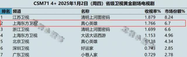《真正的英雄》才播出两天,收视率直接突破。 1.7,获得卫视黄金档第二名,按照这一趋势,赶超《我是刑警》指日可待。