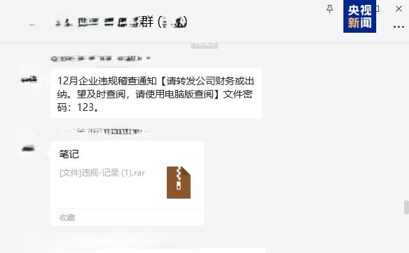中国再次捕捉和发现了中国用户“银狐”木马病毒的最新变异。在此次传播过程中,攻击者继续通过微信群直接传播包括木马病毒加密压缩包文件在内的钓鱼信息和收藏链接,主题为结构财务、税务违规检查通知等,如图1所示。
