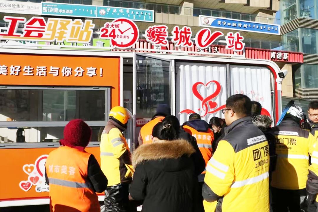 “心”意为流动,关心劳动者权益保障。市区核心商业区设立流动“暖城栈”,为外卖员、快递员、网络汽车司机等新业态群体提供“疲劳休息、热气腾腾、寒冷温暖、伤害可用药物”的保障平台。哪里人多,哪里需要,流动的“暖城栈”就开到哪里,用“跟班”服务给新业态的人满满的收获感。
