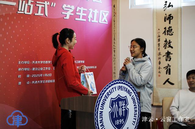 姚迪现场接受了天津大学学生的提问,学校排队队长给姚迪送去了精心制作的礼物。