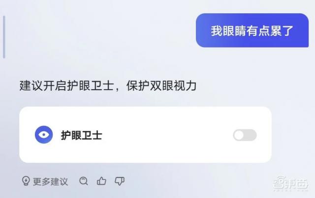 并且生成式 AI 优秀的自然语言理解能力也会给感觉带来很多加分。例如,我可以直接跟随。 AI 说,我的眼睛有点累,这时, AI 然后自动弹出开启护眼模式的选项,AI 不但能帮助我们设置计算机功能,而且能更准确地理解我们的意图。