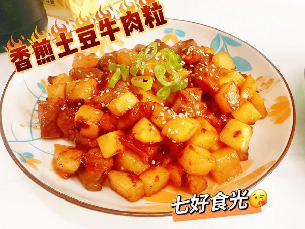 #我家乡的酱油美食#酥脆柔软,肉质醇厚~~土豆丁香煎牛肉粒