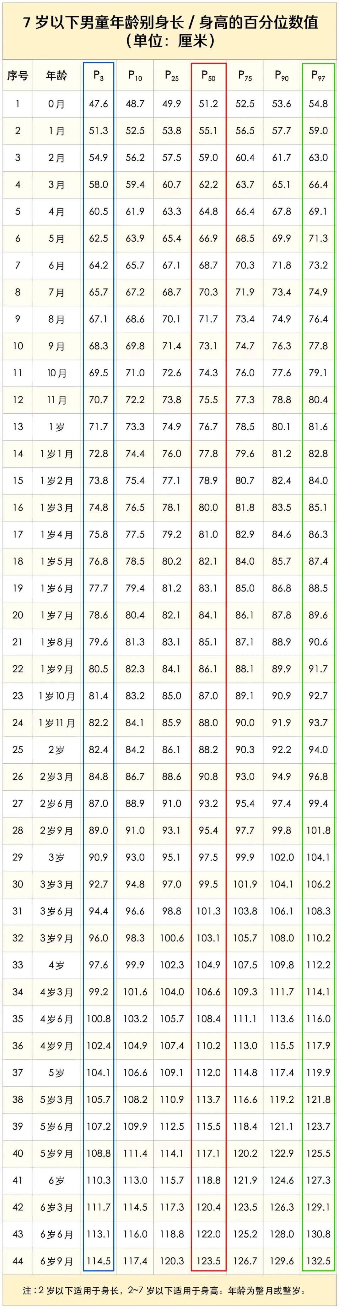 假如孩子的身高总是“偏矮”的话(<P3)那一栏,必须尽快到医院内分泌科就诊。