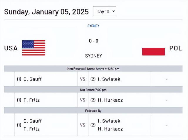 波兰和美国的联合杯决赛具体比赛已经发布:高芙 vs 弗里茨斯瓦泰克 vs 高芙胡尔卡奇 / 弗里茨 vs 斯瓦泰克 / 胡尔卡奇。