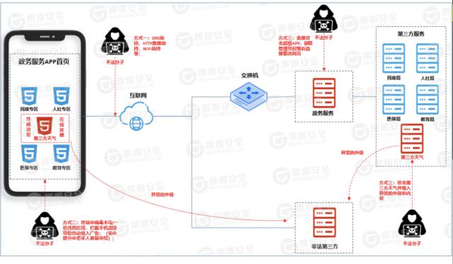 根据对攻击过程的追溯分析和对黑灰产品的研究表明,对此, APP 主要攻击外链的方法有三种,分别是:
