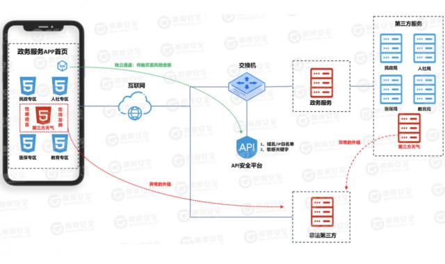 通过在前端植入安全安全渠道应用安全监测平台 SDK,该 SDK 通过 APP 初始化后,动态监控 APP 内部 Webview 通过同步的流量浏览行为 / 针对异步分析模式 APP 里的 H5 动态监控外链浏览情况 / 控制,及时发现行为问题;与此同时,全渠道应用安全监控平台支持构建白名单机制,只允许授权中的域名。 /IP 应用程序进行载入浏览,支持对载入内容进行动态检查,及时发现非法显示内容,并及时向后端平台报告风险情况进行预警显示。