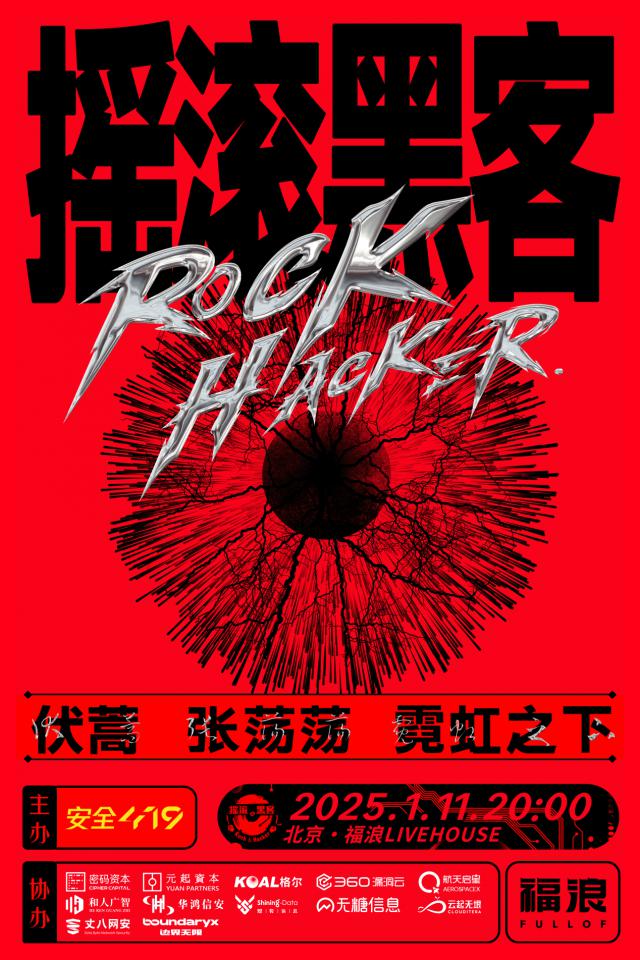 "摇滚 & “黑客”项目最大的意义在于通过网络安全与摇滚的跨界冲击,向世界呈现真正的黑客精神和真正的网络安全产业,促进网络安全事业的发展。自项目启动以来,一直备受业界关注,众多知名网安企业都参与到这个项目的众筹中来。和“摇滚黑客”一样 2025 音乐会也来自网安行业的投资者:密码资本、元起资本、格尔软件、360。 漏洞云、HackingClub、许多优秀的网络安全公司共同协办,如无限边界、航天启星、与人广智、华鸿信安、熠数信息、无糖信息、云起无边、丈八网安等。不仅如此,本次演唱会由主办方精心挑选的三组优秀艺人——“伏蒿”、“张荡”和“霓虹下”负责表演的部分,为大家带来了一场充满激情的狂欢盛宴。与此同时,恐怕也是如此 2025 一年中国“正义黑客”最大规模的狂欢晚会!
