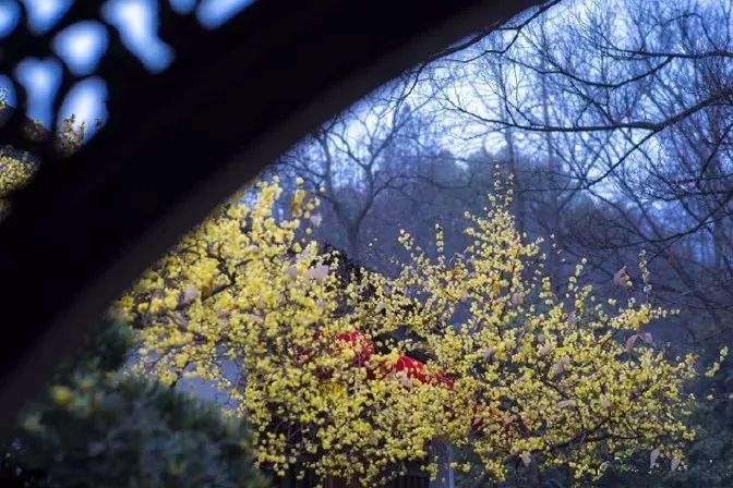 最奇怪的赏梅在于,在送畅园到二泉书院的路上,一棵超大的蜡梅树斜在墙上,每年12月中旬都会盛开,在白墙和瓷砖的映衬下特别有味道。