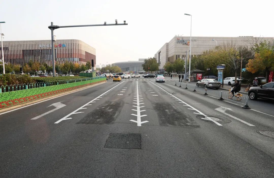 同时,右转机动车信号控制增加到广东路与公园道交叉口的东口和北口,车道流向控制万象城和彩悦城停车场出口,即万象城停车场出入口的两条车道设置为直行左转和直行右转,彩悦城停车场出口禁止机动车左转。