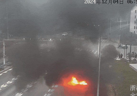 12月4日上午6时41分,浙江省浦江县白马镇351国道行驶中的一辆黑色SUV突然起烟自燃,明火瞬间从车底喷出,燃烧强烈。火灾导致车内所有物体烧毁,整辆车只剩下一个铁架。火灾原因仍在进一步调查中。