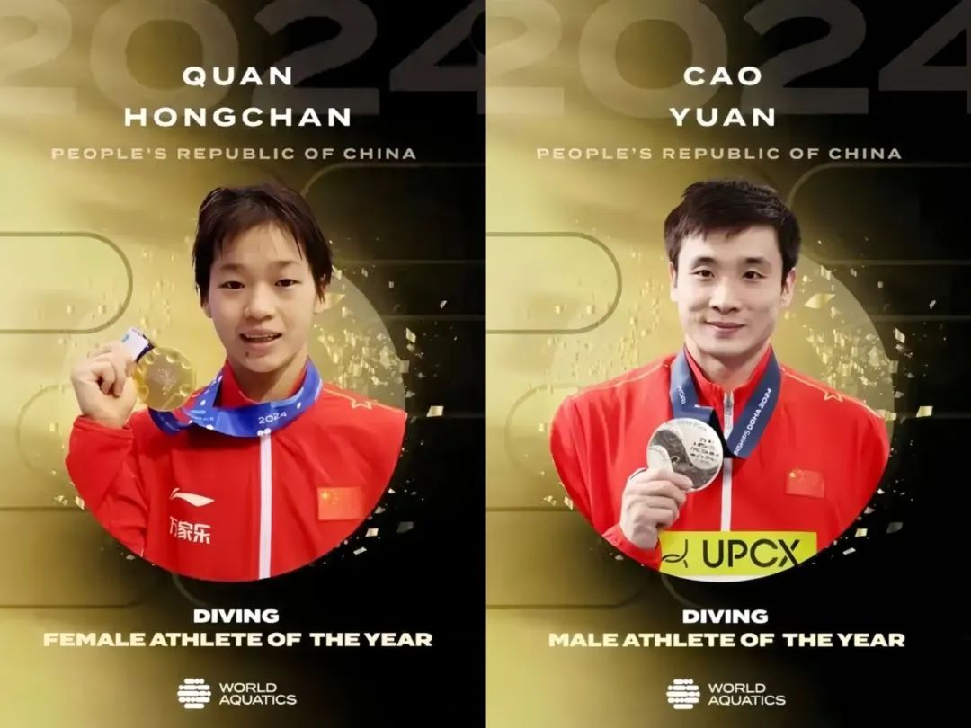 日前,世界泳联公布了2024年各项目最佳运动员名单。中国跳水队奥运会四朝元老曹缘当选最佳男子跳水运动员,全红邑当选最佳女子跳水运动员。详情(来源:新华社)