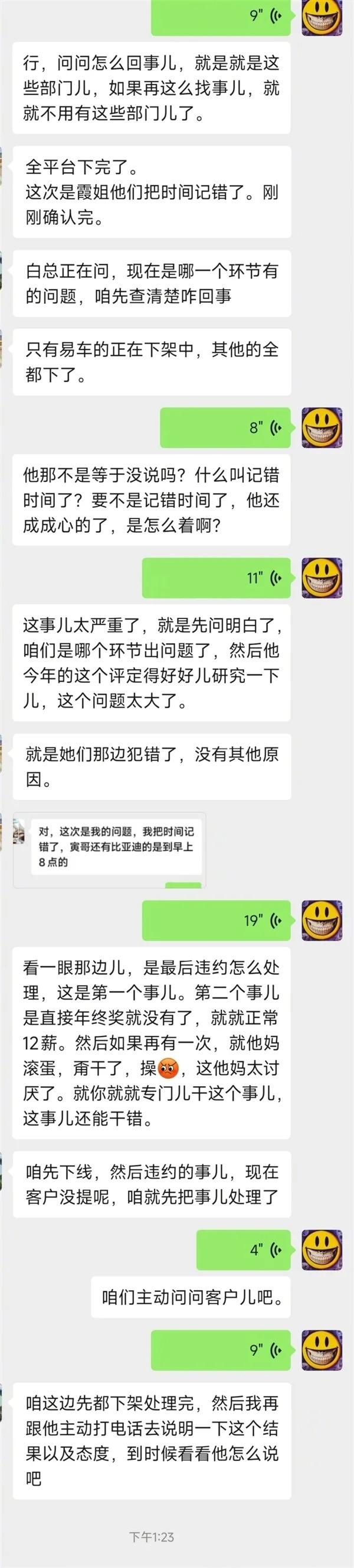 与此同时,他还发布了一张聊天记录截图,可以看到他已经处理了相关事宜,包括从各大平台下架发布的视频、追究责任的相关人员(扣除年终奖,如果再犯,直接离开)等。