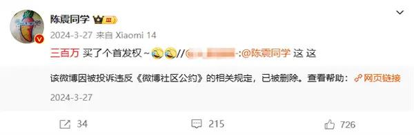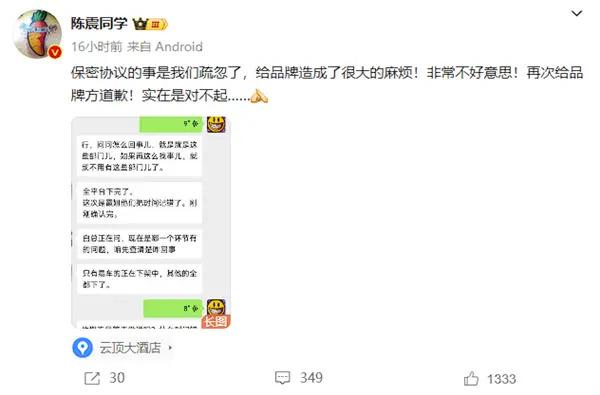 值得注意的是,去年小米 SU7 上市前一天,陈震也提前泄露了这辆车,最后他公开道歉并赔偿,当时他指出“300万买了首发权”。