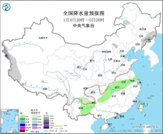 4日20:00至5日20:00,新疆南疆西部山区、西藏西部、吉林东部、辽宁东部、贵州西北部、云南东北部等部分地区有小雪或雨夹雪。小贴士:预计6-9日将有冷空气向南移动,影响中国中东部地区。冷空气到来前,中东部分地区大气扩散条件恶化,有轻至中度雾霾。公众可以选择戴口罩旅行。