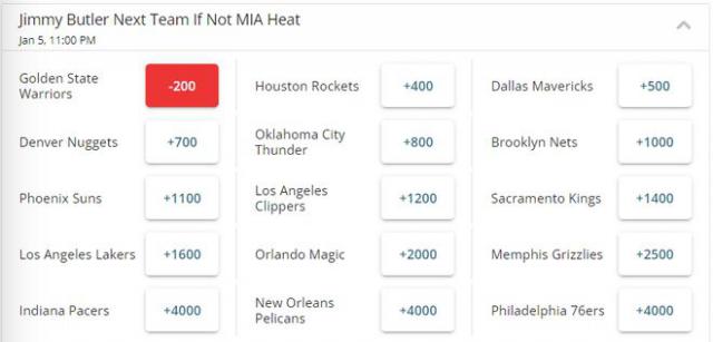 以下是巴特勒最新的下家赔率和排名。——