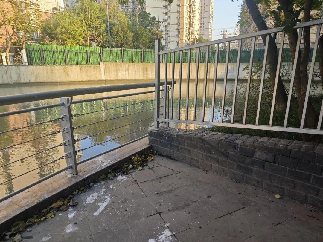 虹口花园三期建于2004年,沿俞泾浦而建,东、南、西都靠近河流。近年来,小区内河道防护铁栅栏年久失修,不同地区护栏断裂生锈。居民走路观景都很担心,带来安全隐患。通过“微更新”改造,河道护栏得到了维护和更新,安全隐患得到了处理,社区环境得到了改善。