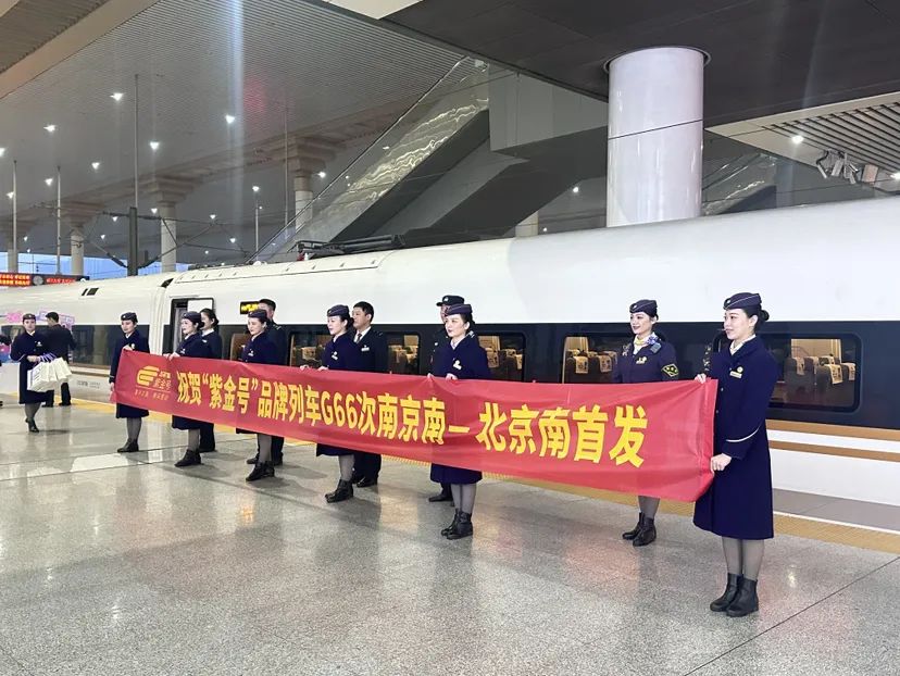 “紫金号”G66次品牌列车最早可追溯到1975年南京至北京的126次旅客列车。它不仅创造了从南京到北京的铁路之旅,还开启了一段华丽的旅程。经过66次、K66次、T66次,再到G66次华丽的蝴蝶变化,“紫金号”的每一次升级都见证了铁路的辉煌发展。更加体现了国家的日益强大和人民对美好生活的不懈追求。