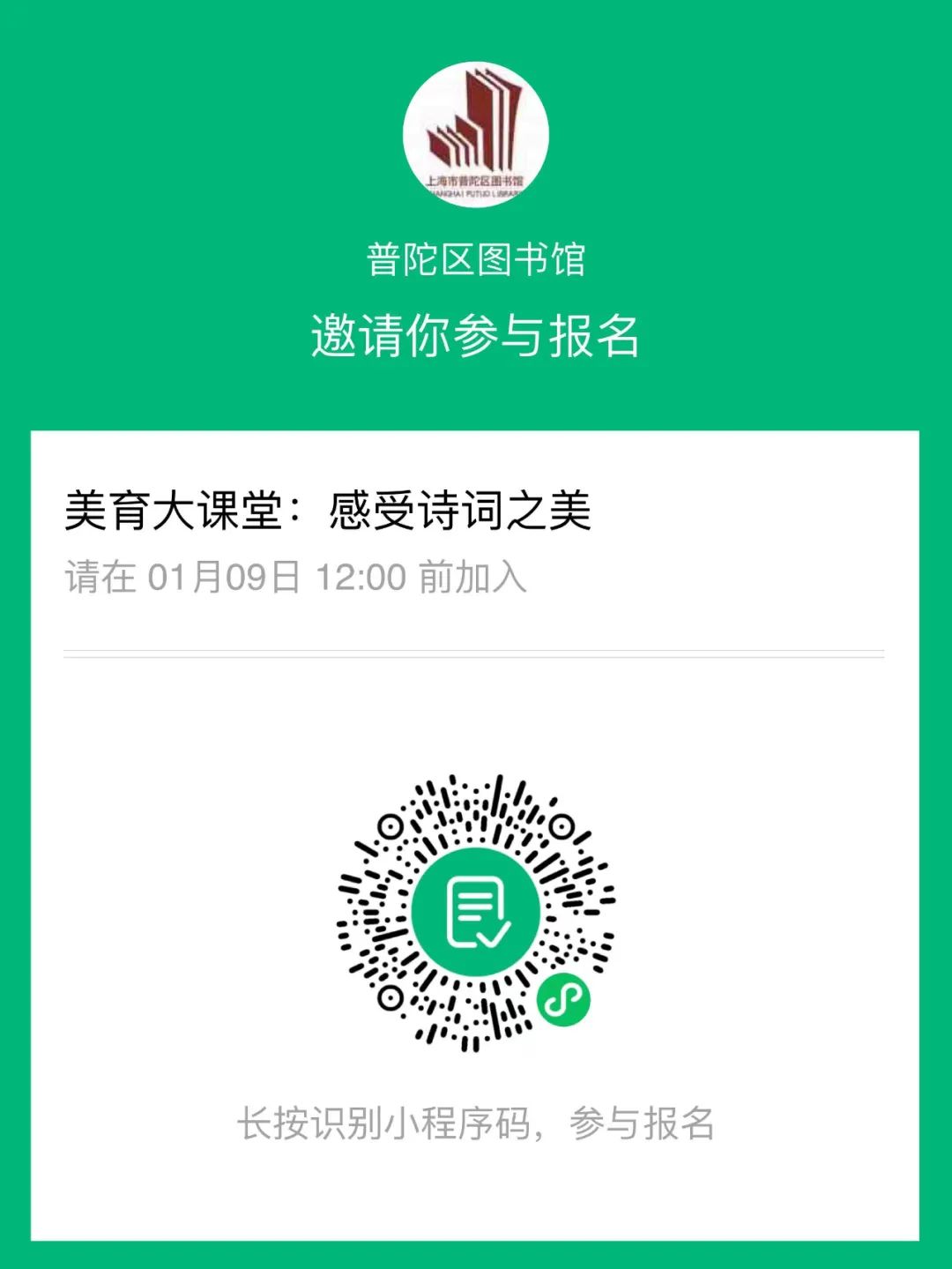 普陀区图书馆将于1月10日推出有趣的诗歌互动美育活动,以弘扬中华优秀传统文化,激发儿童对诗歌的兴趣。