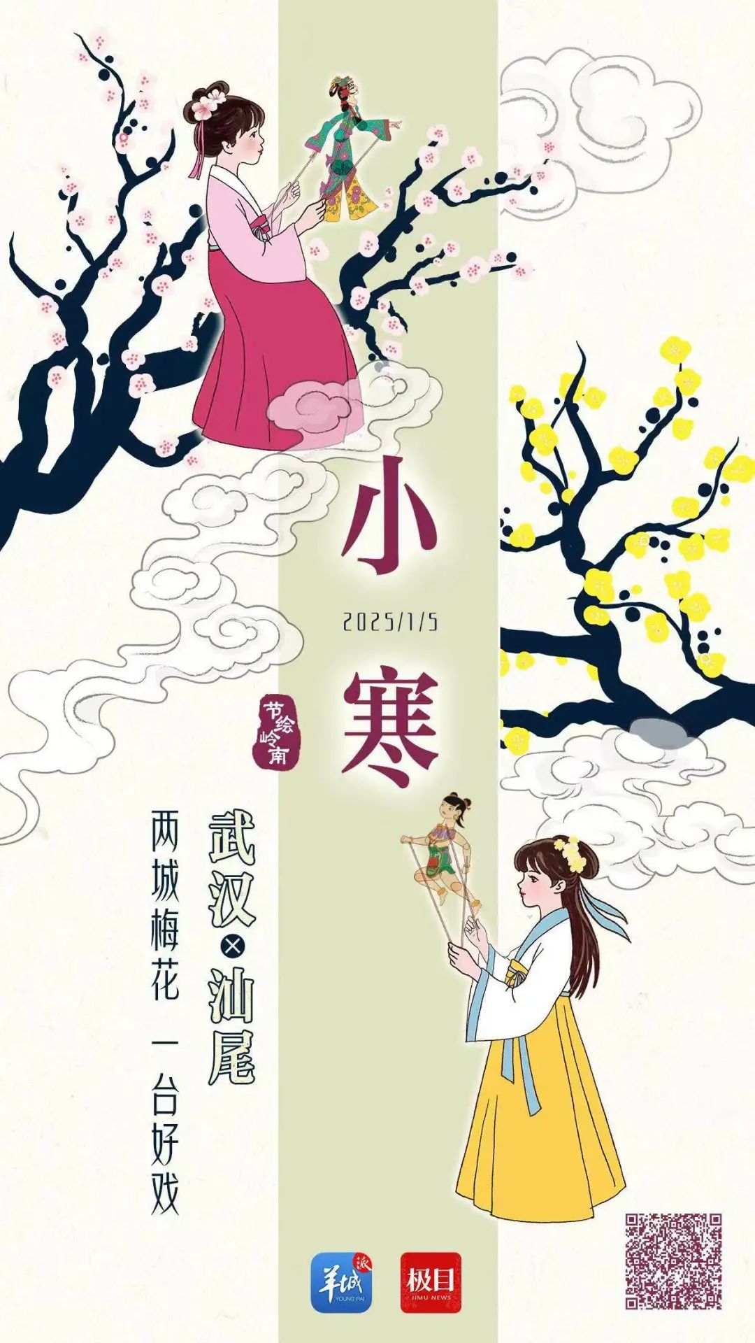 寒冷的冬天,年味越来越浓。羊城晚报羊城派《节绘岭南》“拍了拍”新闻,邀请您到东经115度线上的两个赏梅胜地——荆楚名都武汉、岭南古城汕尾,闻闻梅香与年味交织的城市气息。