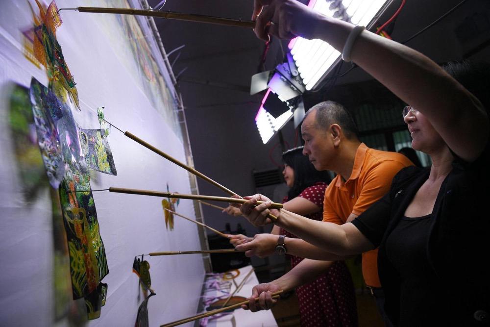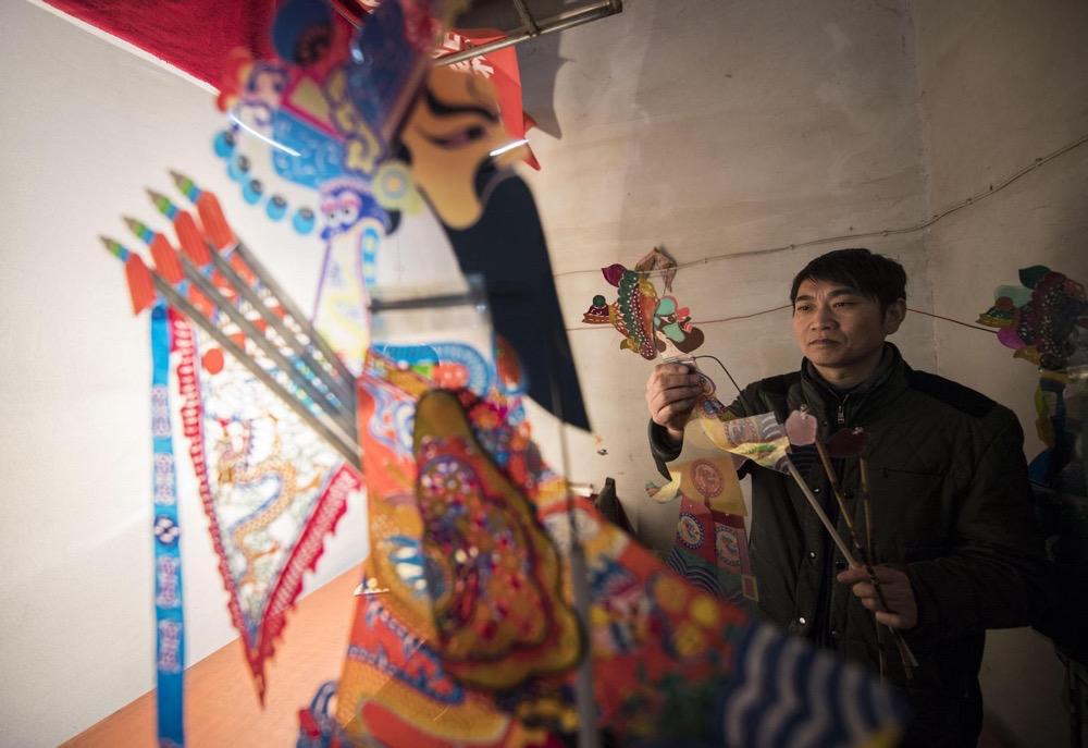皮影戏表演者在武汉表演。图片/极目记者 王永胜