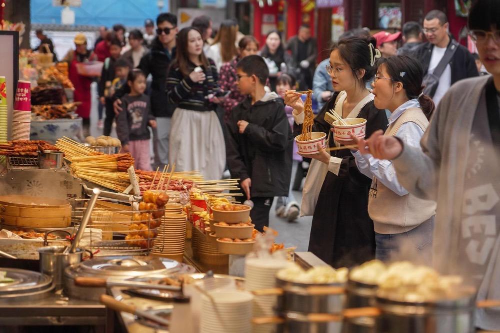边走边吃是武汉吃货的技巧。图片/极目新闻记者 肖颢