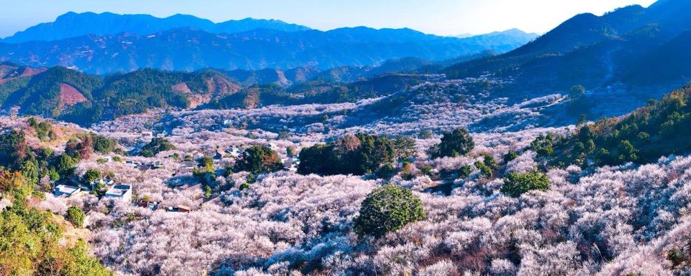 汕尾陆河梅花盛开时,有遮山蔽岭的气势。图/羊城晚报羊城派