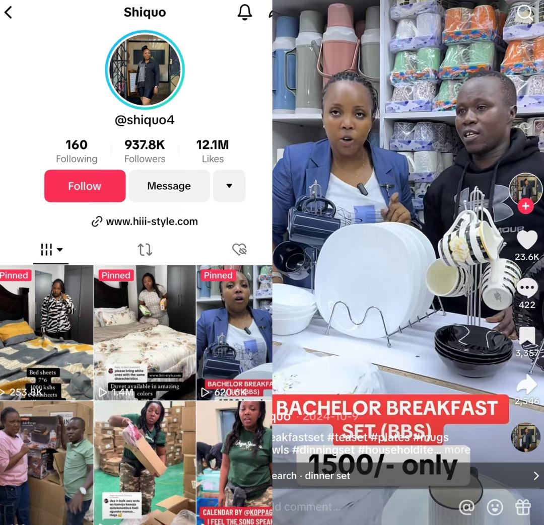 比如非洲本地网红@shiquo4 最近一年非常火,她在当地市场开设了一个档口,并尝试通过短视频和直播推销产品,目前在TikTok已经有93万粉丝。但由于缺乏“小黄车”购物功能,无法直接实现带货。因此,她不得不做了一个网站,将直播流量引导至网站,通过网站完成下单并履约。