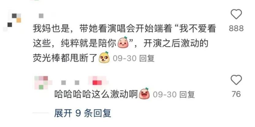 看到买票之前还在推说不需要的爸妈,在演唱会开场后却拿出了舞断荧光棒的架势,很多人可能才真切感受到, 中老年人也有很大的情感需求。