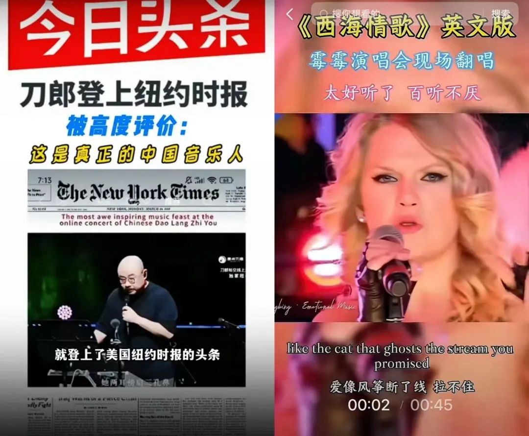 崇拜使人盲目,因此关于偶像的假新闻,他们也很容易照单全收。比如有消息称,《纽约时报》评价刀郎的音乐是中国音乐的最高水准、特朗普竞选时谈刀郎、泰勒斯威夫特翻唱刀郎……让一些中老年粉丝十分激动。